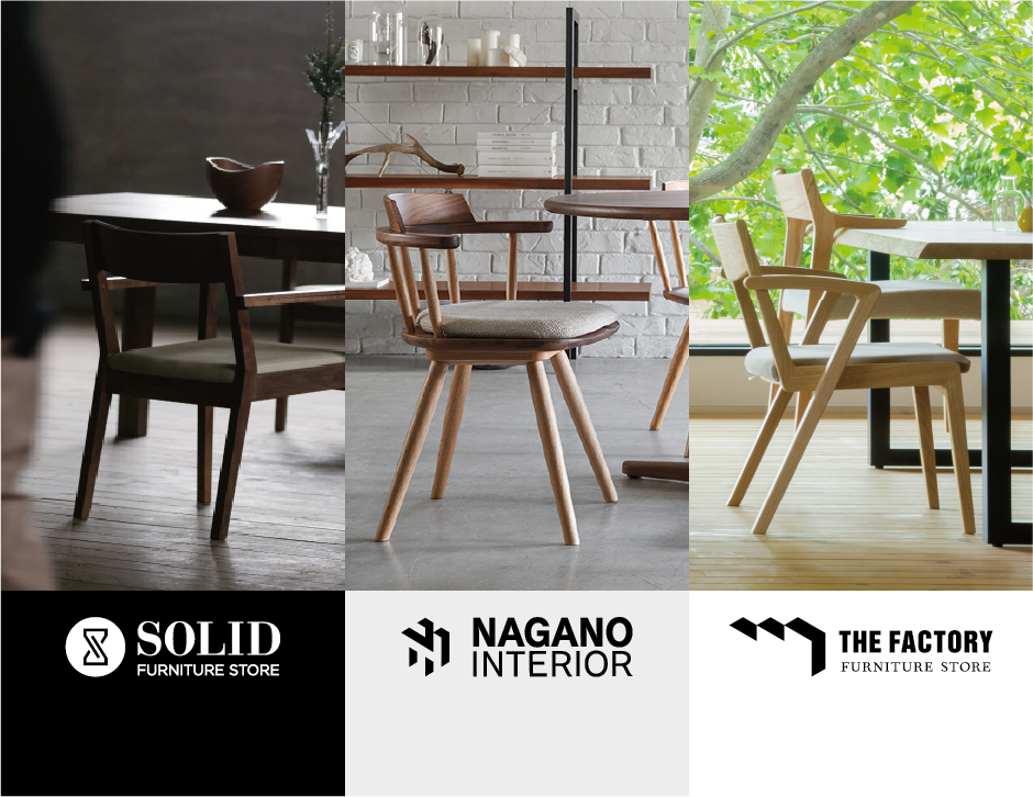 3つの自社ブランドである「ナガノインテリア」「SOLID」